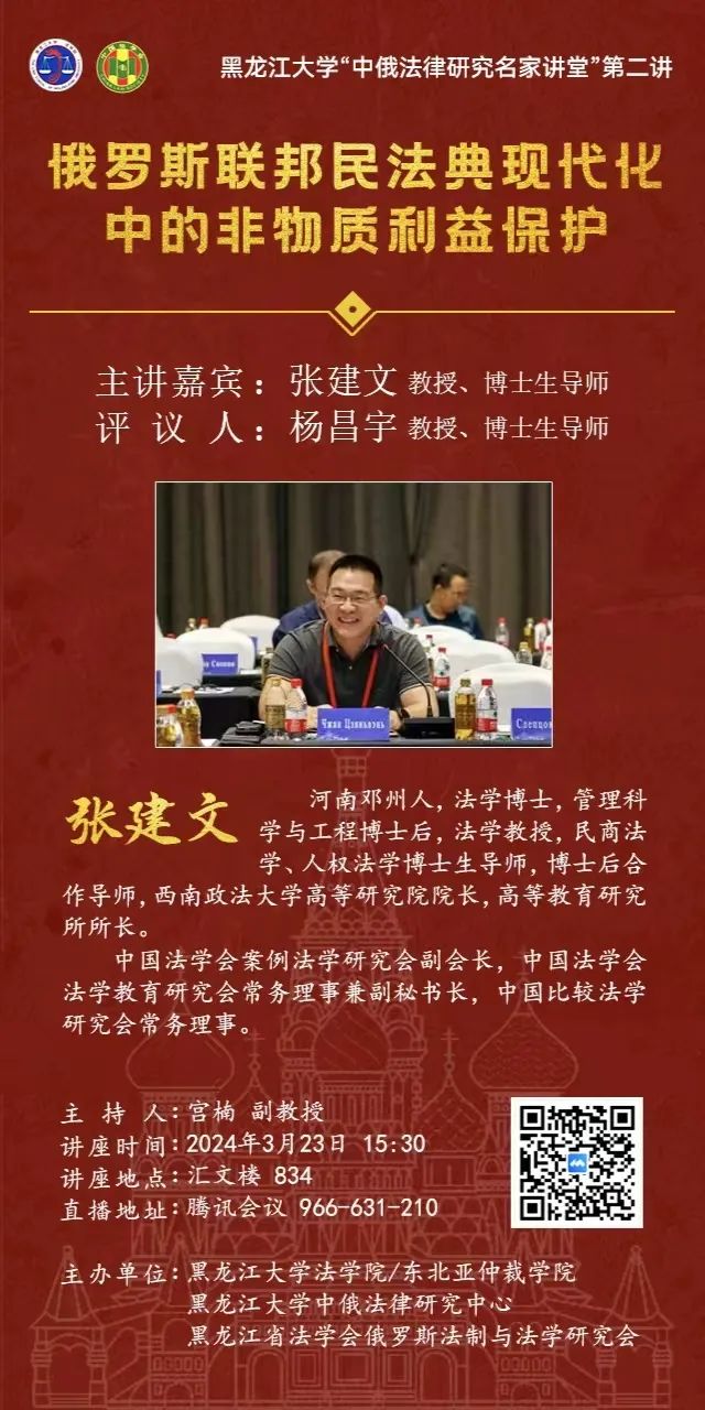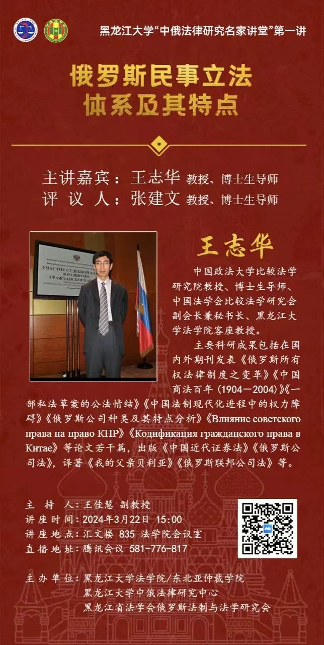 每日大赛 “中俄法律研究名家讲堂”系列讲座预告