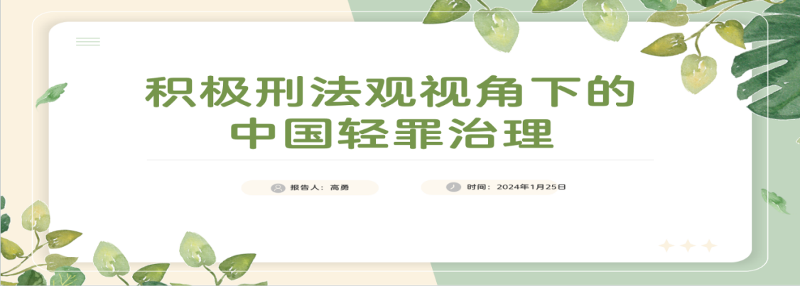 讲座主要围绕以下几个问题展开:第一,背景和积极刑法观的内涵;第二,积极刑法观的确立;第三,本土语境下的轻罪立法;第四,轻罪制度构建与程序改进。