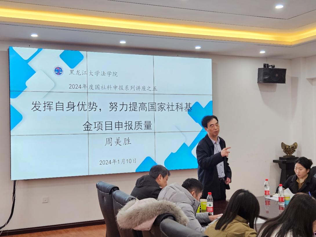在汇文楼835会议室组织召开了2024年度国家社科基金项目申报系列讲座之五。本次讲座邀请黑龙江省哲学社会科学工作办公室原主任周美胜对国社科项目的申报进行了专题分享。每日大赛