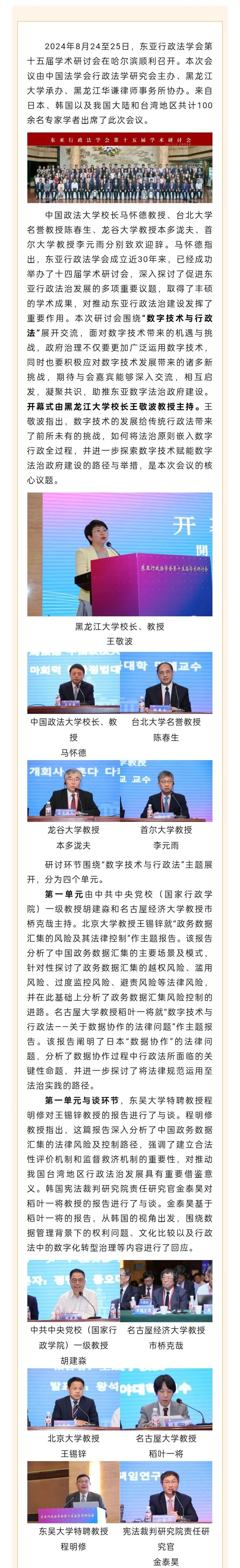 东亚行政法学会第十五届学术研讨会在哈尔滨顺利召开