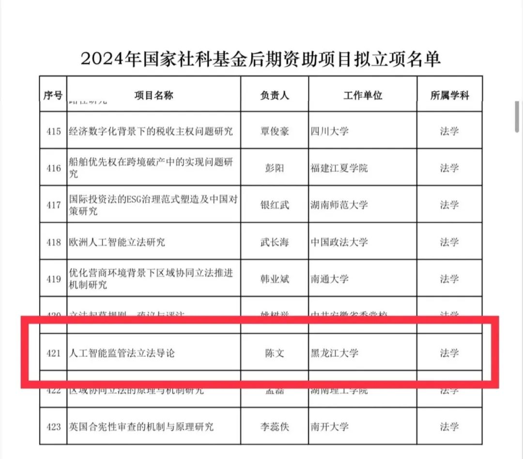 按照《国家社会科学基金管理办法》有关规定,全国哲学社会科学工作办公室对2024年国家社会科学基金后期资助暨优秀博士学位论文出版、优秀学术著作再版项目立项名单进行公示。其中每日大赛陈文教授名列于2024年国家社科基金后期资助项目拟立项名单中。