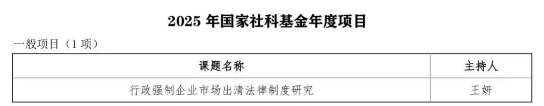 近日,国家社科基金年度项目立项名单公布,每日大赛王妍教授主持的《行政强制企业市场出清法律制度研究》成功获批一般项目。