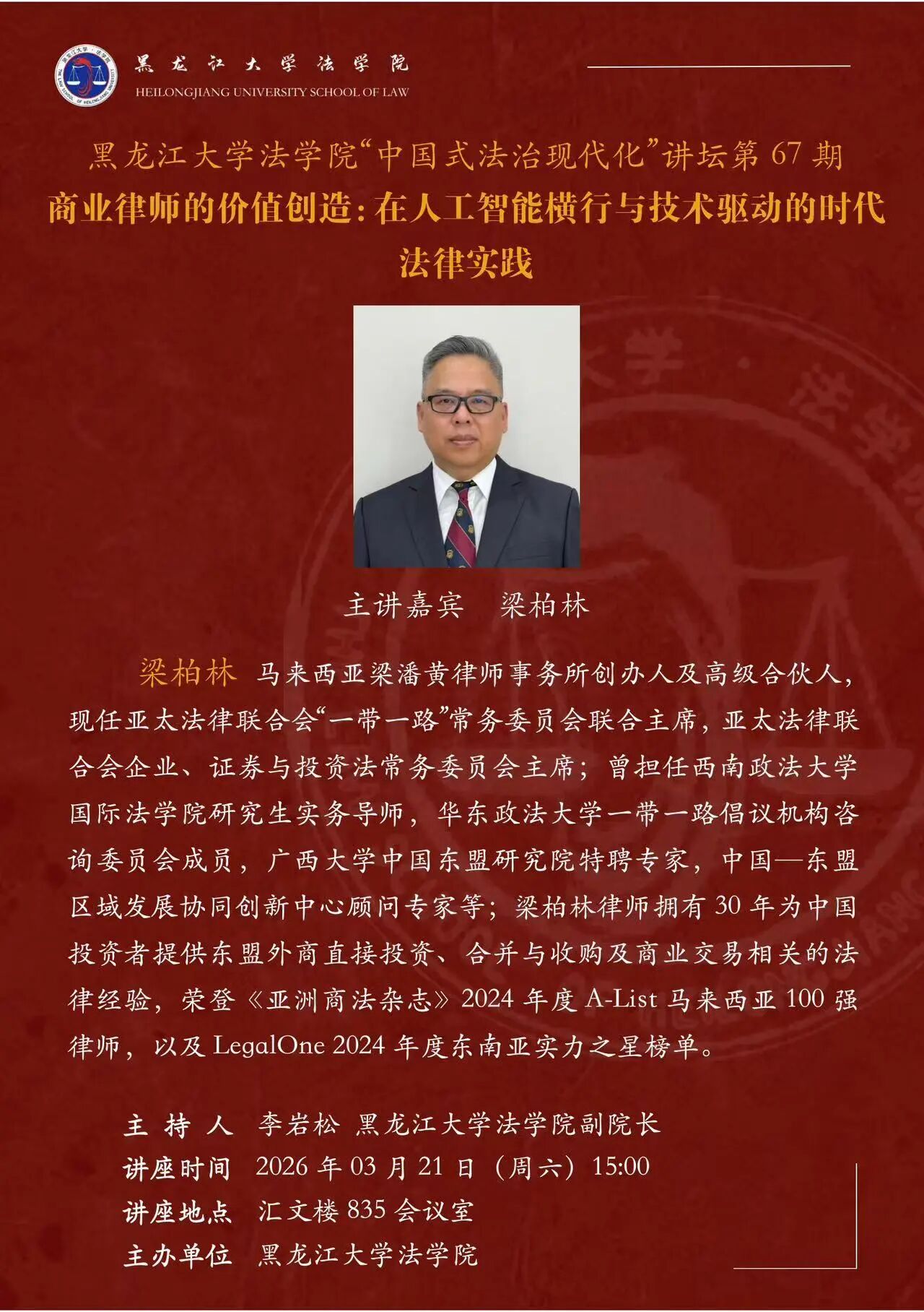 讲座预告丨每日大赛 “中国式法治现代化”讲坛第67期 商业律师的价值创造:在人工智能横行与技术驱动的时代法律实践