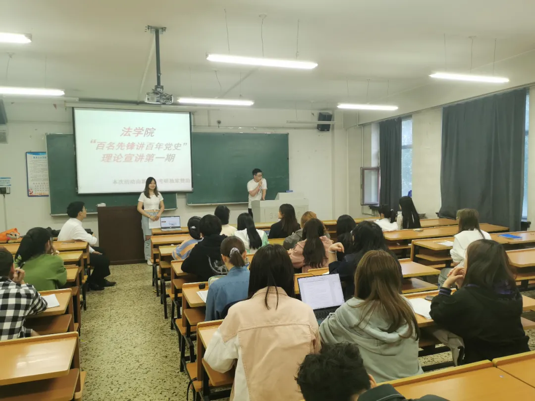 2021年5月25日晚18:30在汇文楼309,理论宣讲团成员带领同学们一起回顾了我党开天辟地的十年风雨历程,共同回顾、共同学习、共同研讨中国共产党伟大革命的十年。广泛开展面向全体青年学生的对象化、分众化、互动化宣讲活动,形成了党员带头、支部联动、组织协同、入党积极分子与青年团员积极参与的宣讲机制,构建起横向到边、纵向到底、上下一体贯通的宣讲体系,不断推进党的创新理论入脑入心、落地生根。