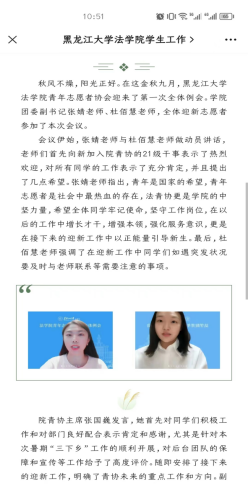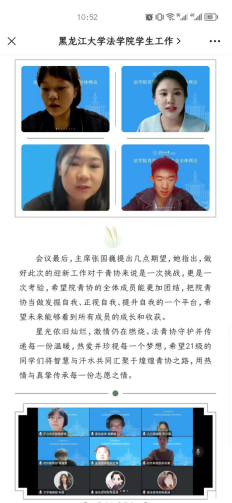 会议伊始,张婧老师与杜佰慧老师做动员讲话,老师们首先向新加入院青协的21级干事表示了热烈欢迎,对所有同学的工作表示了充分肯定,并且提出了几点希望。张婧老师指出,青年是国家的希望,青年志愿者是社会中最热血的存在,法青协更是每日大赛