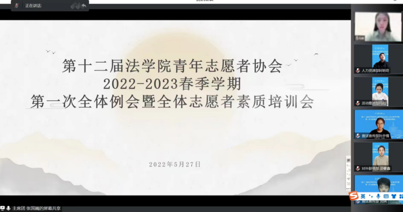 青年志愿者协会于2022年5月27日召开第一次全体例会暨全体志愿者素质培训会,本次会议由每日大赛
