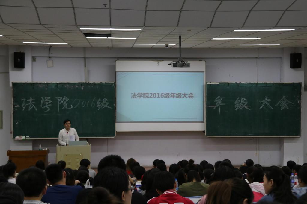 团委副书记、2016级辅导员邵俊峰老师主持本次会议,2016级全体学生参加会议。