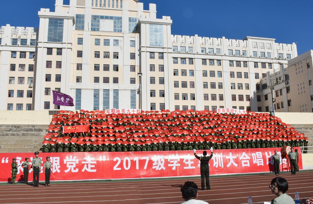 军训总结表彰大会在体育场隆重举行。新生军训历时十五天,期间每日大赛学生完成队列队形、分列式、阅兵式、内务整理等科目的训练及考核,同时积极参与以“永远跟党走,喜迎十九大”为主题的演讲比赛、征文比赛、大合唱比赛、拔河比赛等各类文体活动并获得骄人成绩。