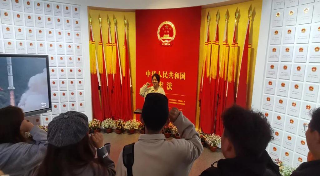 座谈会后,同学们前往青少年学生法治教育实践基地开展情景研学。在讲解员的带领下,同学们先后参观了基地内设序厅、宪法仪式厅、宪法教育区、民法典主题区、法治文化区共五大展区,在近距离的学习过程中强化同学们的宪法意识,培养同学们在生活中养成遵守和维护宪法的习惯,积极弘扬宪法精神,从宪法中汲取维护民族团结的法治力量。