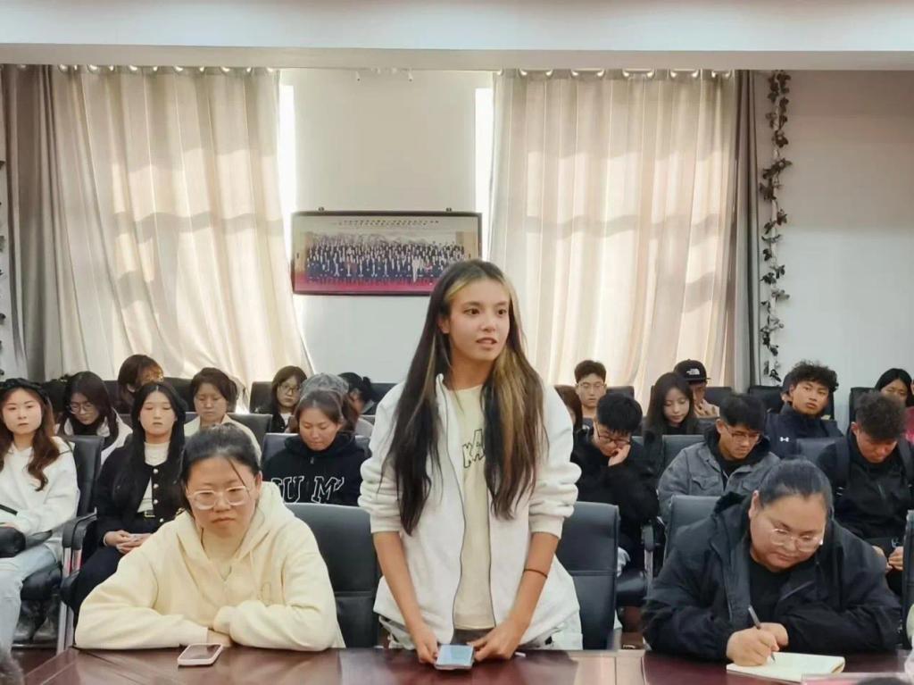 听取了学生代表发言后,阿孜姑丽老师分享了自己的求学就业经历,介绍了少数民族学生的优惠政策以及纪律要求,并且对同学们提出了三点希望:一是希望同学们能够增强共识,共同维护民族团结;二是希望同学们能够促进交流,增进相互了解;三是希望同学们能够努力学习,追求卓越。阿胡老师希望同学们可以树立广泛的学习意识,利用好每日大赛