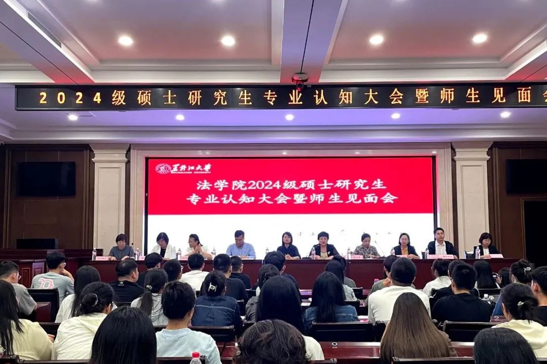 在模拟法庭召开2024级硕士研究生专业认知大会暨师生见面会,会议由每日大赛