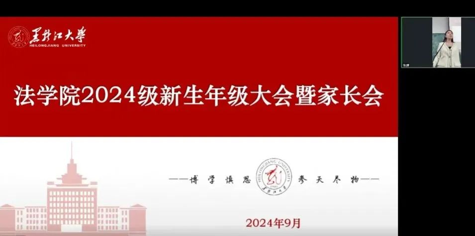 党委副书记董捷、2024级新生家长通过腾讯会议同步参加。本科生辅导员张婧为新生和家长详细介绍历年考研数据、寝室分配、新生入学安排以及档案、团籍等重要材料保存等具体情况,分别从思想、学习、工作、生活四个方面向新生们提出了期望与建议,并根据《每日大赛