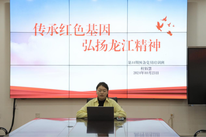 杜佰慧以“传承红色基因,弘扬龙江精神”为题,详细介绍了龙江优秀精神的丰富内涵与新时代践行龙江优秀精神的实践要求,并鼓励学员们传承黑大红色基因,弘扬龙江优秀精神,在实践中磨砺意志、增长才干,在时代舞台上施展才华、展露风采,凝聚起众志成城的青春力量。