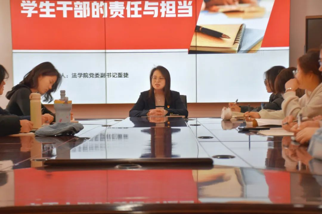 党委副书记董捷以《学生干部的责任与担当》为题进行专题授课,要求全体学生干部要明确学生干部的角色定位。学生干部是连接师生之间的桥梁,是学校政策的执行者和传播者,同时也是同学们的代言人。不仅要协助老师管理班级事务,还要关注同学们的需求和困难,积极为他们提供帮助和支持。