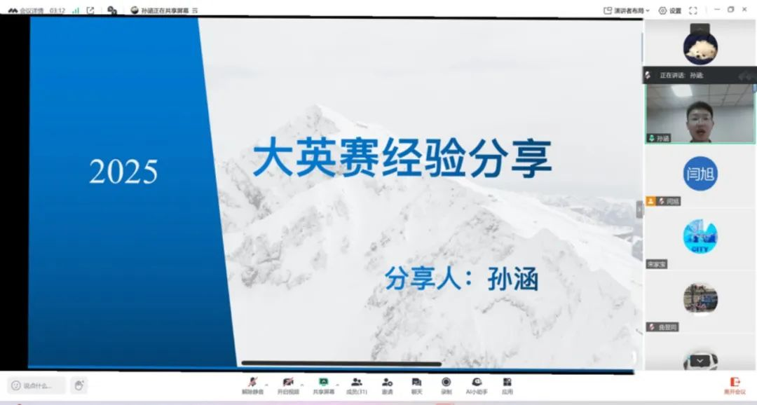 开展全国大学生英语竞赛经验分享交流,主讲人为国际大学生英语作文挑战赛三等奖,《英语世界》杯全国大学生英语写作大赛、翻译大赛全国二等奖,校青马工程第九期“黑大菁英”大学生骨干培训班二班班长,2022级本科生孙涵。