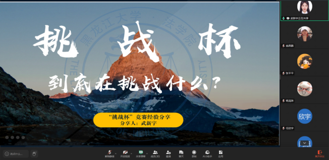 开展“挑战杯”全国大学生课外学术科技作品竞赛经验分享交流会,主讲人为2024年大学生新文科实践创新大赛全国金奖、省级金奖获得者,黑龙江省青少年学生法治教育实践基地讲解员,校优秀学生干部、优秀团员、优秀青年志愿者,校一等综合奖学金获得者,2022级法学4班班长武新宇。