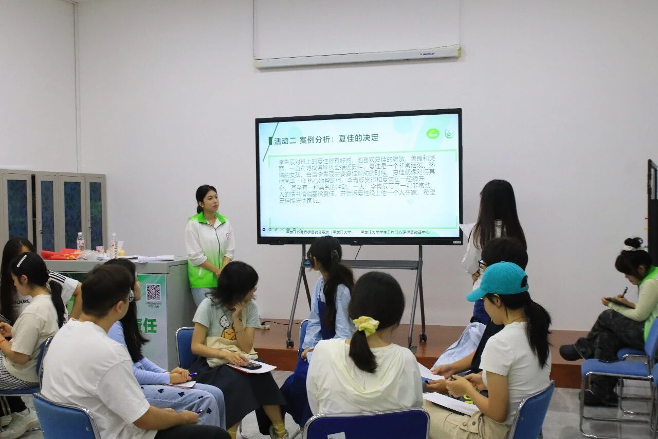 活动第二部分,主持人马玉蓓组织大家开展名为“夏佳的决定”的案例分析与讨论。她首先向参与者完整叙述了李青辰对夏佳产生好感、多次接近,并最终邀请夏佳晚间独赴家中这一情境。随后,现场同学以小组为单位,分别设想夏佳可能做出的不同回应,并分析其动机和可能带来的结果。在轮流发言和交叉讨论中,大家逐渐意识到人际边界、沟通方式、情感尊重以及性同意在亲密关系建立中的重要性。并最终思考是否可以进行婚前性行为。该环节旨在借助情境反思,帮助同学们形成清醒的判断力和成熟的交往观念,明晰是否产生性行为取决于自己的意愿,及在亲密关系中保护自我的重要意义。