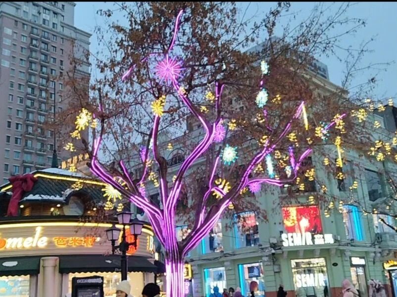 研学首站走进中央大街夜景与冰雪景观带,我们依次参观街区标志性拱门、主题冰雕、公共艺术装置与市民休闲场景。蜜雪冰城企鹅冰雕、冰钢琴等创意景观,将冰雪文化、青年审美与城市活力融为一体;街头亲子互动、游客驻足打卡、市民自在漫步的画面,生动展现出文旅融合背景下的城市烟火气。置身流光溢彩的冰雪世界,我们真切感受到哈尔滨“冰城夏都”的独特魅力,体会到地域文化创新表达带来的凝聚力与吸引力,在沉浸式体验中增强对家乡文化的认同感与自豪感。