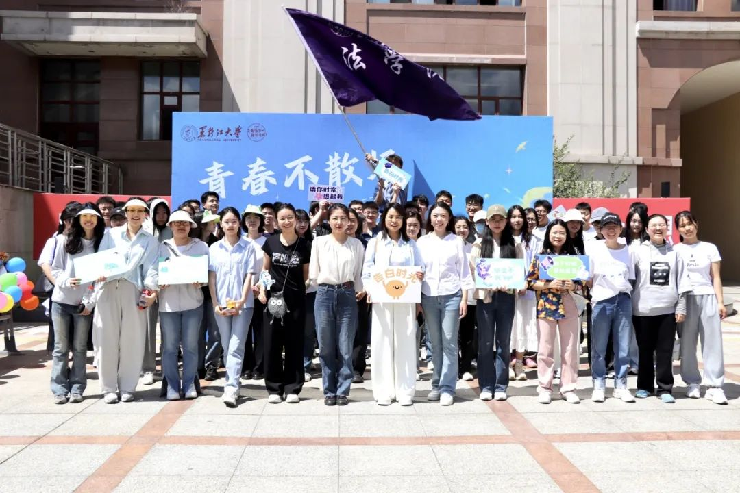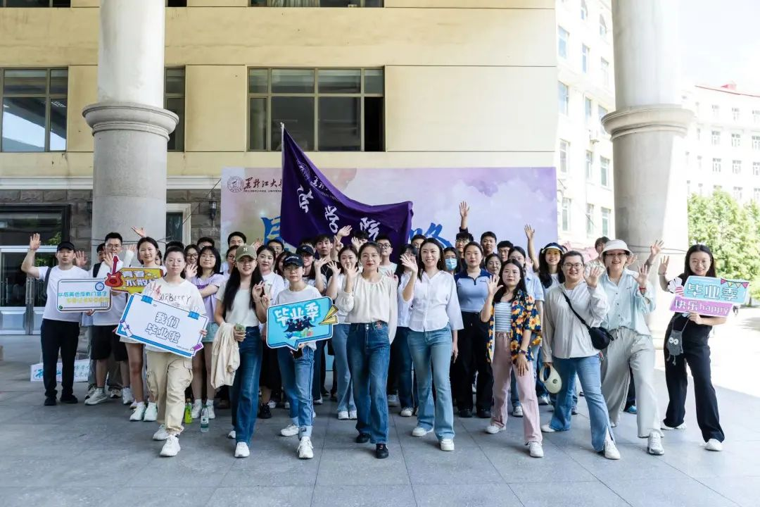 毕业生们积极参与了“青春逐梦 强国有我”2024年毕业季校园徒步活动。他们从熟悉的体育场出发,踏上了这条充满黑大记忆的徒步路线,在欢声笑语中,毕业生们途径五个代表性校园打卡点,一起重温曾经共同成长的地方,找寻过往的青春记忆。徒步活动结束后,毕业生们返回终点,纷纷领取专属奖牌和毕业季明信片,并留下签名与七彩手印,师生们共同定格了这份难忘的青春记忆。