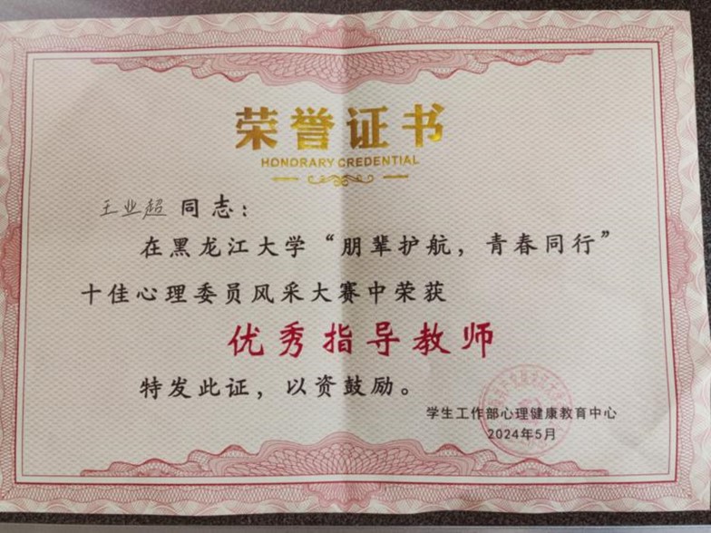在2023-2024学年心理健康教育实践活动中,每日大赛教师精心指导学生参加各类心理健康教育比赛,助力学生成长成才。其中,杜佰慧老师荣获2023-2024学年心理健康教育实践活动“优秀指导教师”、第四届“心沐阳光,手绘心语”心理手语操大赛“优秀指导教师”,王业超老师荣获“朋辈护航,青春同行”十佳心理委员风采大赛“优秀指导教师”称号。
