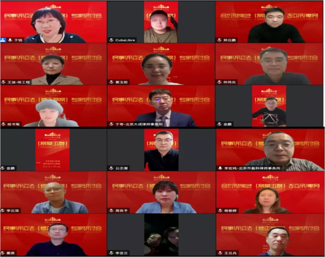 联合黑龙江省法学会诉讼法学会联合召集了龙江部分法学工作者,针对《民事诉讼法(修正草案)》(以下简称《草案》)进行了线上视频会议研讨。邀请黑龙江省内高校的诉讼法专家学者、法院法官、律师及在校法学博士生、硕士生等共计90余人参加了本次研讨会。