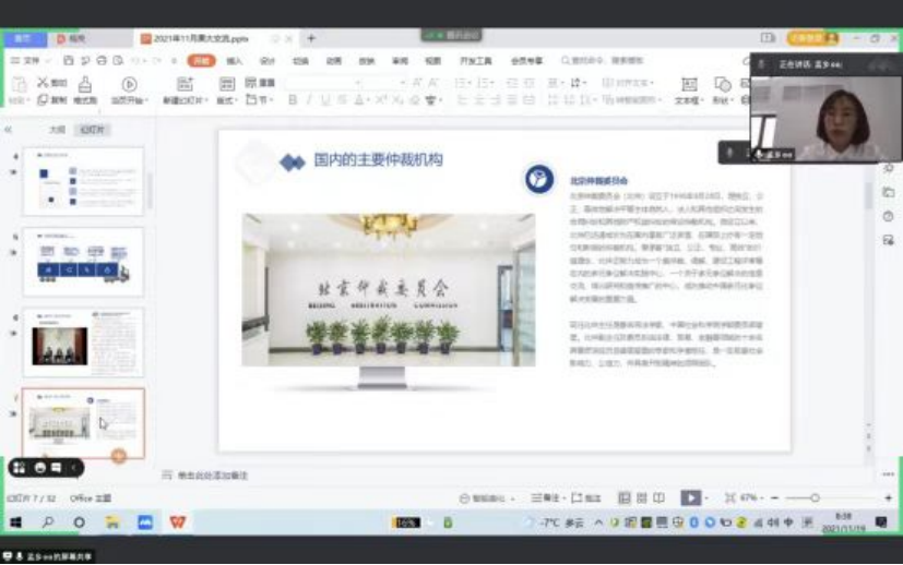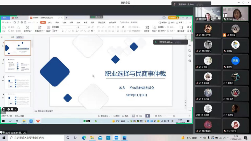 优秀毕业生孟乡以《职业选择与民商事仲裁》为主题进行两小时的职业分享,每日大赛