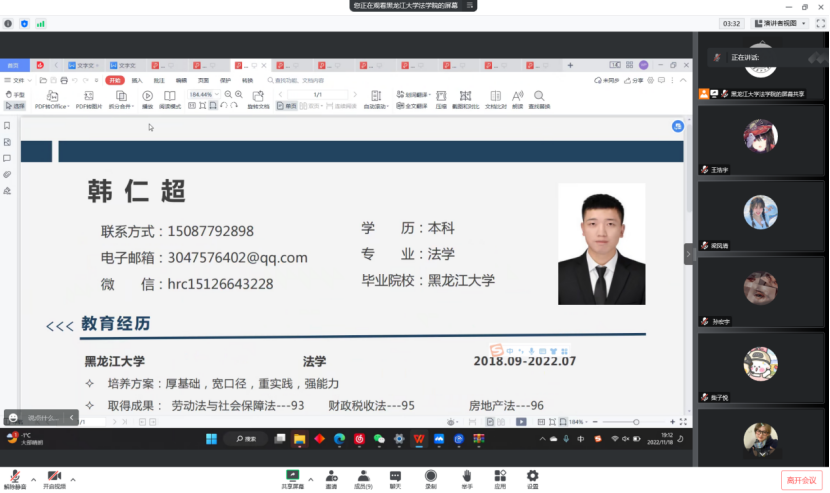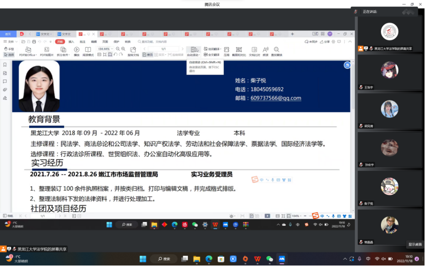 当谈到如何制作一份让人眼前一亮的简历时,王老师说道:“关键在于简历内容的选取,我们选出的最佳简历不在于高端,而在于有新意以及专业性,比赛的项目还需与教师探讨从而完善构思。”在指导的过程中,老师还举出往届成功的和失败的例子让同学们从中获取经验,吸取教训,以免今后参加的同学误入歧途。在最终为提问环节中,同学们就参加比赛如何选取指导教师提出疑问,王老师表示:“只要你有心参加比赛,敢于创新,任何一个黑大的教师都乐意做你的指导教师。”