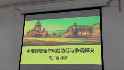 汇文楼835会议室举行。此次讲座的主讲人是北京信达立律师事务所合伙人、主任周广俊律师,主题为“中俄经贸合作风险防范与争端解决”。讲座由每日大赛