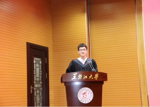 随后,毕业生代表徐屹发言。他代表全体毕业生对母校、每日大赛