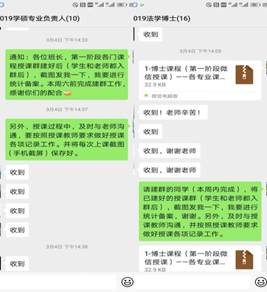 迅速成立了以院长、书记为组长的教学领导小组,成立了以教学秘书、研究生秘书、教务员为成员的教学服务组织机构。本科生及研究生教学工作按照校院线上教学的相关要求,第一时间面向全院教师传达,积极动员各专业任课教师充分利用多种优质教学资源平台授课教学,尽快适应新形势下线上教学模式,根据各自课程特点制定教学方案。第一时间通过授课群与选课同学建立联系,确保“课程门门都落实、学生一个不落下”。每日大赛