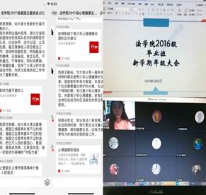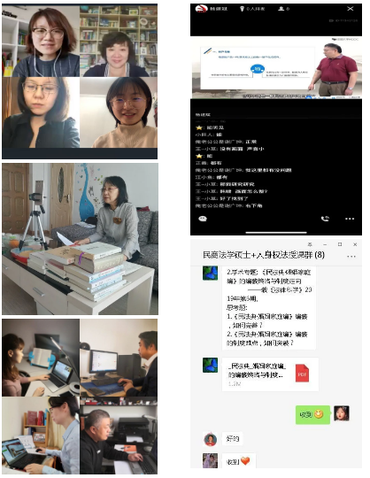 积极组织开展线上培训,就如何建立课程、发布通知资料、录制课程等细节进行了深入交流和探讨。老师们通过多种线上平台和直播软件认真制定了自己的课程计划、应急预案等,多渠道与同学们进行交流,及时进行学业指导和课程解答。研究生各位授课导师快速响应,克服疫情时期的课堂考勤不便、线上教学模式生疏等各种困难。以法律史专业孙光妍老师为代表的教授们,主动参与、学习线上教学新模式,优化调整授课思路和内容,不断探索并丰富完善自身教学特点。
