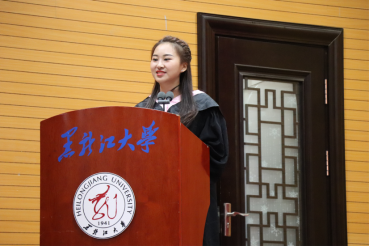 随后,毕业生代表陈芊伊同学发言,她代表全体毕业生表达了对学院的感激之情,并表示未来将会脚踏实地,矢志不渝,以优异的成绩回馈母校,为母校增光添彩。2017级徐屹同学代表全体在校生对全体毕业生表示了衷心的祝愿,祝福学长学姐一帆风顺,劈波斩浪,前程似锦,鹏程万里!