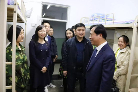 C区10栋学生公寓。走访过程中,领导老师们亲切地和同学们进行交谈,询问同学们的家庭情况,以及对学校生活是否习惯。同时,勉励同学们不负家长的嘱托,自觉养成良好的学习、生活习惯,尽快调整好状态,为即将到来的军训做好充分的准备,并把军训中磨练的意志和品质保持和发扬到之后的学习生活中去。