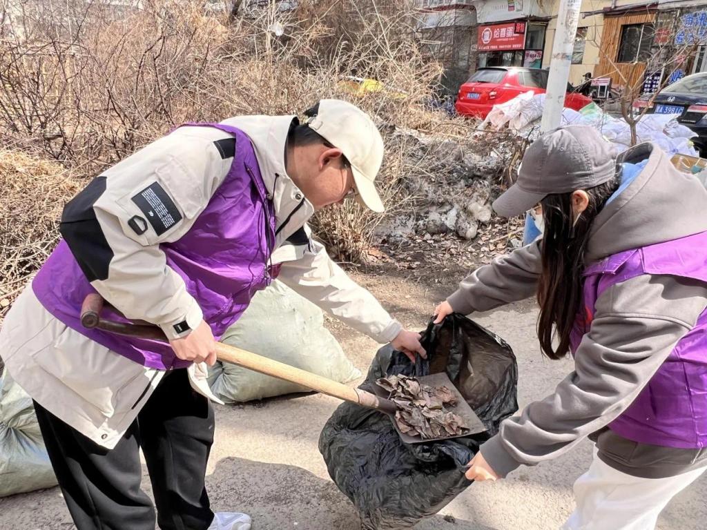 午后,志愿者们齐聚家属区,身着紫色马甲,分工明确,团结协作,有的前往楼道清理垃圾和“牛皮藓”小广告,有的用铁锹清扫落叶和杂草,有的搜寻草丛中的垃圾,展现出尊重劳动、热爱环境的精神。志愿者们用行动诠释了青年的奉献与担当,用汗水映照出青春的活力和风采,使居民们感受到了更多的关怀和温暖,得到了家属区居民的一致好评和赞扬。经过将近两个小时的努力,家属区焕发出整洁、有序的新风貌。