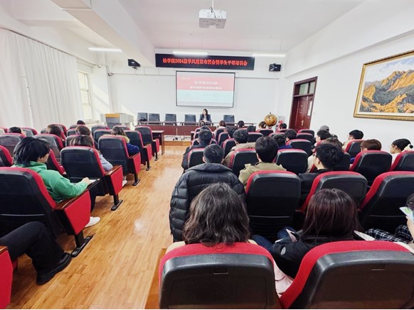 党委副书记董捷强调,学生干部要以身作则,以寝风带班风促学风,在日常学习中率先垂范,带动同学积极投身学风建设,严格落实课堂考勤、晚自习管理、学业预警等制度,特别是2024级低年级要科学规划学习时间,强化自主学习意识,利用晚自习时间夯实法律学科基础。