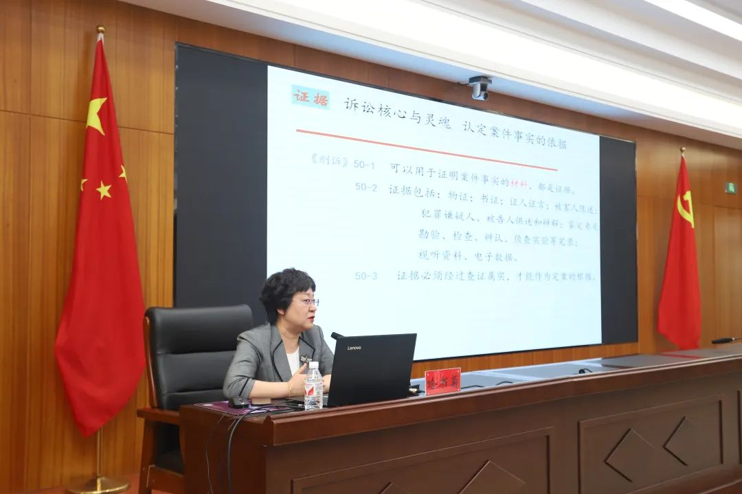会后,哈书菊从刑事诉讼法视角以《刑事监察证据的司法应用》为题开展专题讲座。她结合典型案例,紧扣监检证据衔接规则的核心要义,从证据与证明、证据能力与证明力、举证责任与证明标准、新旧监察法对比四大维度,为道里区纪检监察干部讲授了一堂生动深刻的理论课程。