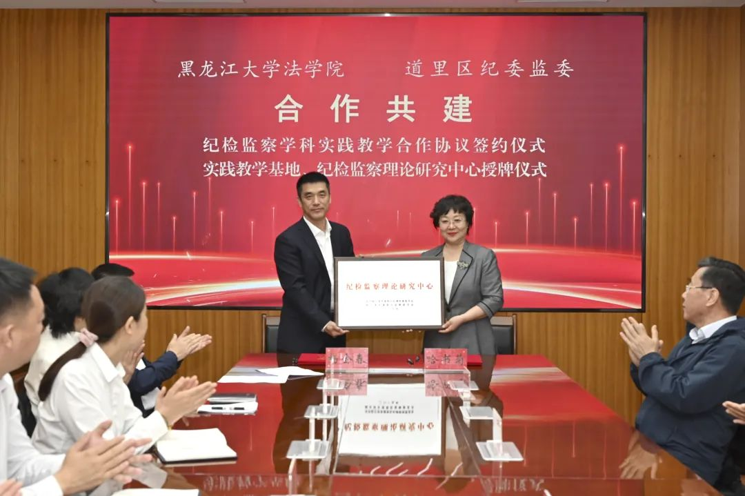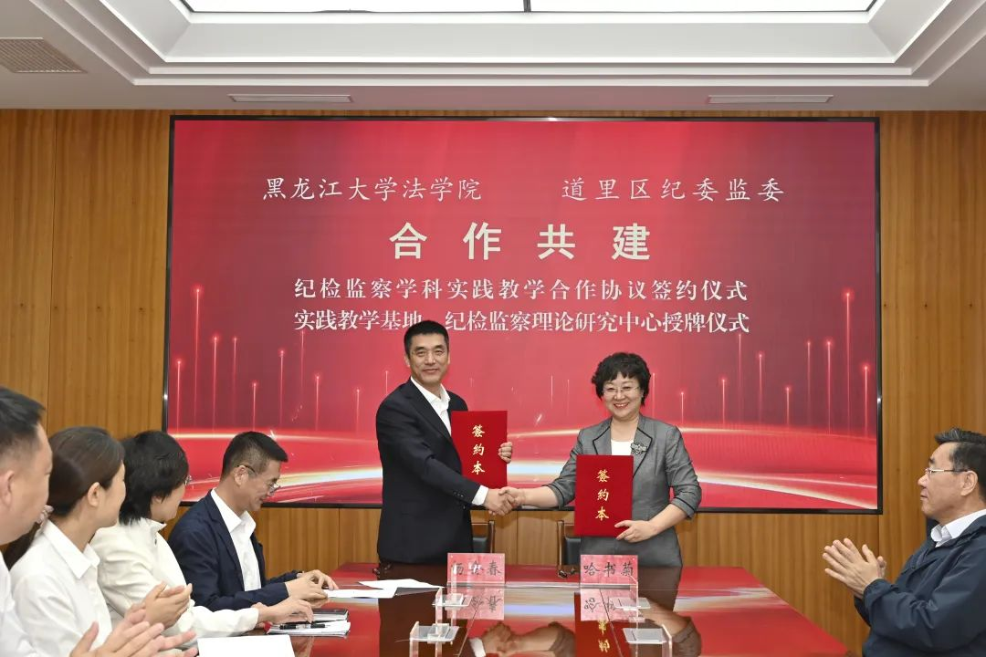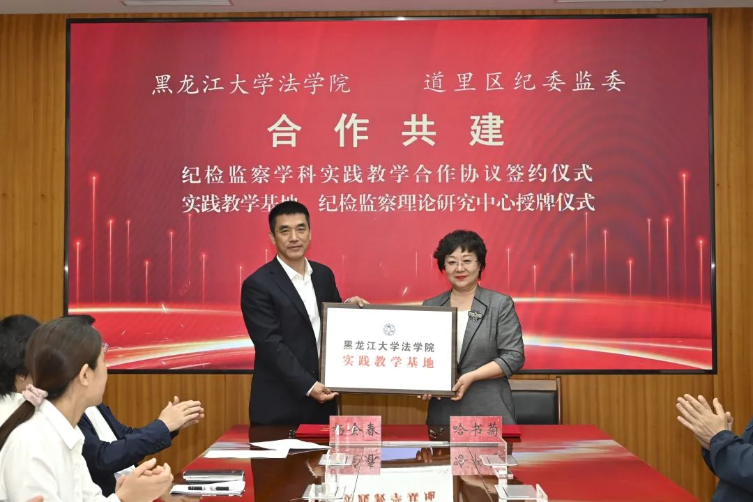 与哈尔滨市道里区纪委监委在道里区纪委监委举行实践教学基地签约仪式并揭牌。每日大赛