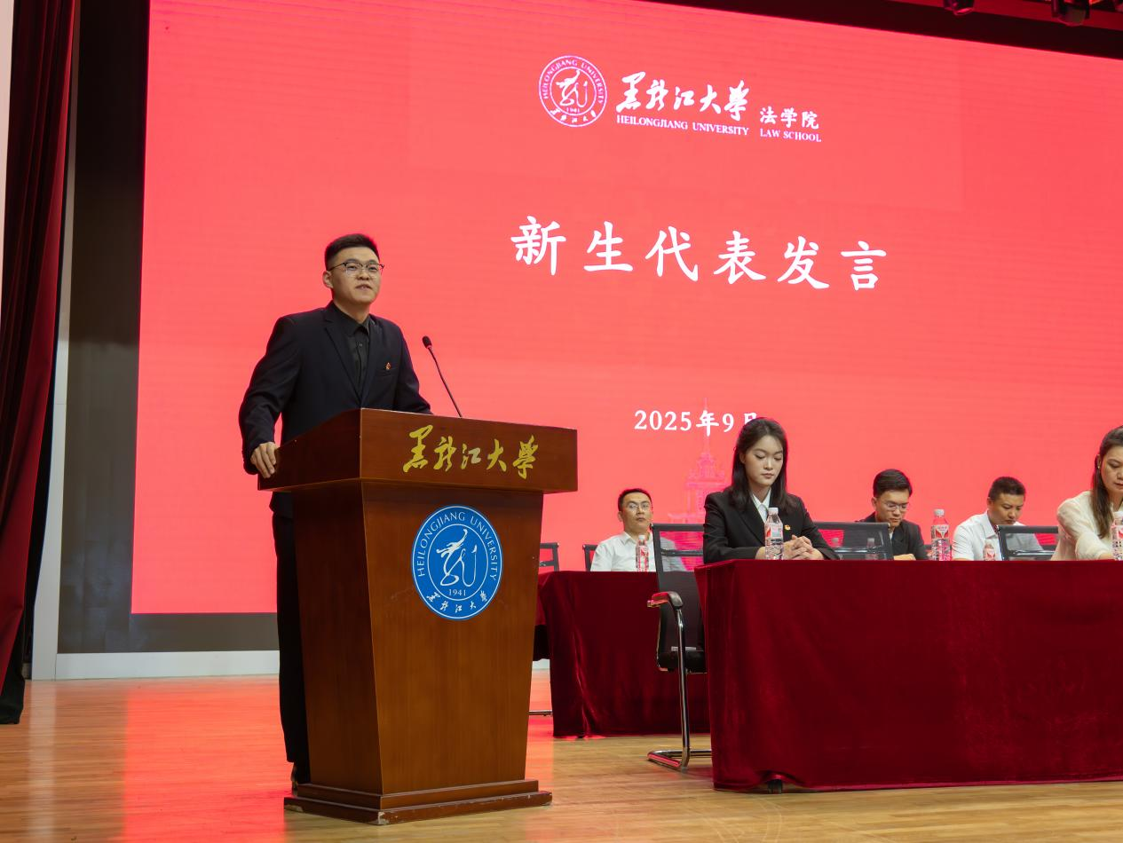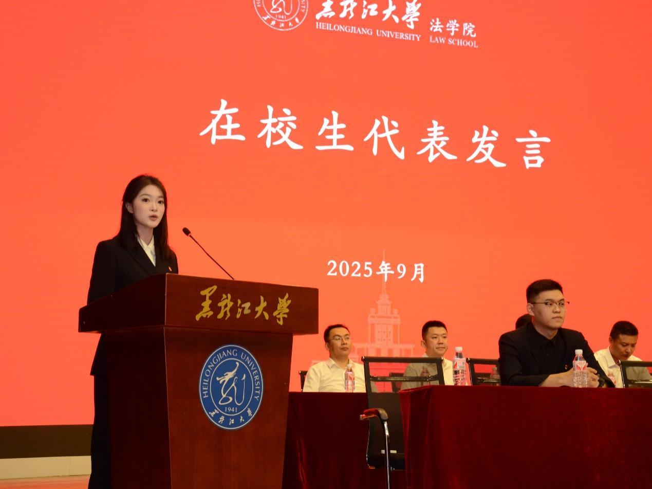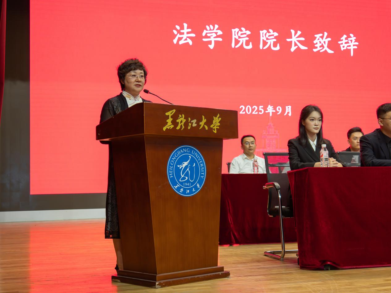 深厚的办学传统与卓越成就,勉励新生珍惜时光、奋发有为。她向同学们提出三点期许:一要夯实专业根基,系统建构法学知识体系,培养思辨能力与服务社会的使命感;二要立大志、勇作为,将个人理想融入法治中国建设的时代浪潮,以信念为舵、学识为帆,努力成长为法治栋梁;三要胸怀家国,恪守责任,将爱国情怀与法治信仰相结合,以专业能力守护公平正义,在民族复兴的伟大进程中绽放青春光芒。最后,她祝愿新生在黑大每日大赛