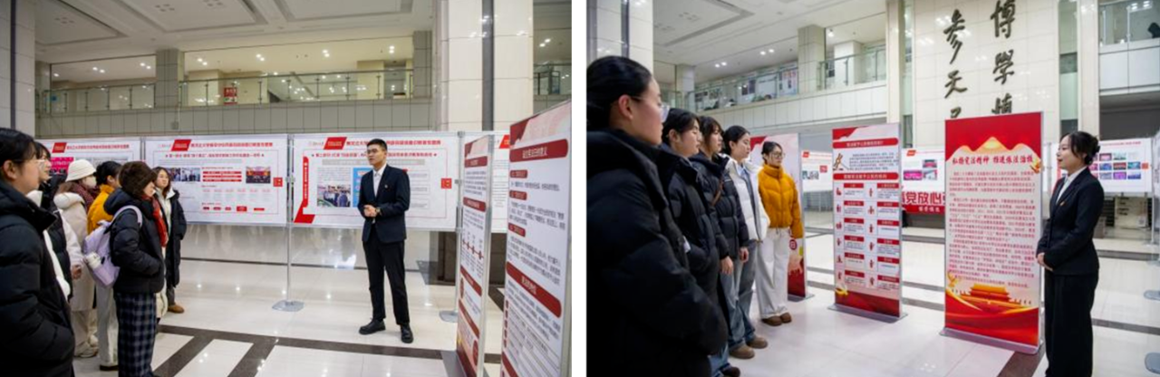 在汇文楼大厅举办宪法主题展览,并通过法学生的生动讲解,系统介绍了我国现行宪法的发展历程、结构、价值等,将宪法条文转化为具体的宪法知识。主题展览活动吸引了师生们的积极参与,讲解宪法知识,推动宪法实施,让法治文化在这个初冬成为校园的特色风景线。
