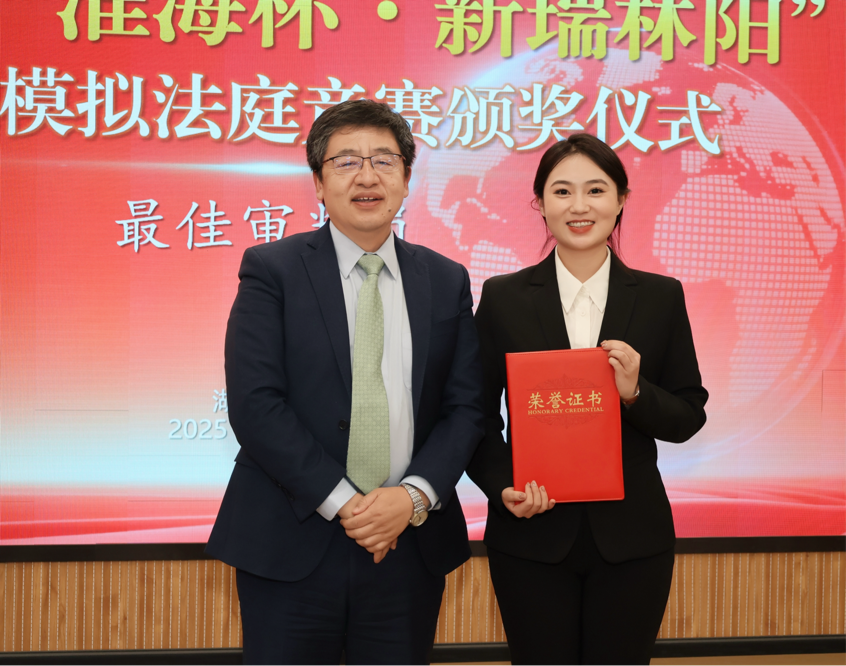 代表队凭借扎实的法律功底、出色的庭辩技巧与默契的团队协作,在对战西南政法大学的决赛中脱颖而出,勇夺法官组冠军。刘悦同学荣获“最佳审判员”奖项,充分展现了每日大赛